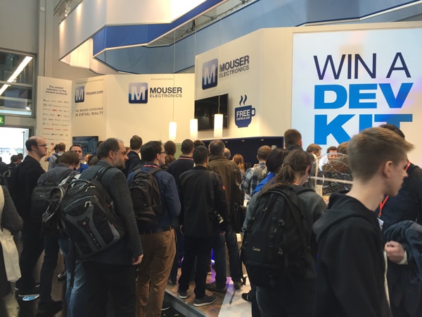 You will find the Mouser logo on almost every photo taken at the trade show. Not surprising, since more than half the visitors picked up a Mouser bag and more than a third have been registered at our stand. Mouser seems to be in the right place at the right time for many, many people.